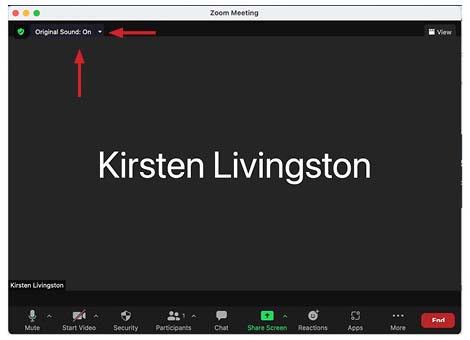 See that little green shield on the top left of your meeting screen? That’s where you can toggle Original Sound on and off. The screen above has Original Sound OFF